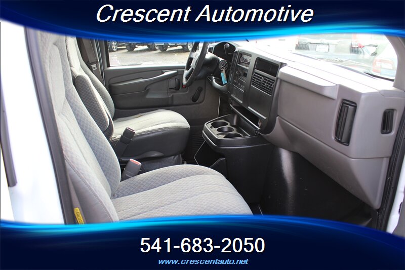 2003 Chevrolet Express 2500 in Summit White with Medium Dark Pewter interior. Powered by the Vortec 5.3L V8 (285 hp, 325 lb-ft) mated to the factory 4-speed automatic and rear-wheel drive, this van averages just under 4,000 miles per year with total mileage below 95,000 and returns about 12 MPG city / 17 MPG highway. Factory-equipped for work and utility, it includes heavy-duty suspension and cooling, steel wheels, air conditioning, AM/FM stereo with CD, tilt steering, power steering, durable Medium Dark Pewter cloth seating, and standard driver and front-passenger airbags. Overall fair condition — dependable and ready for service or daily use.
