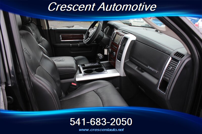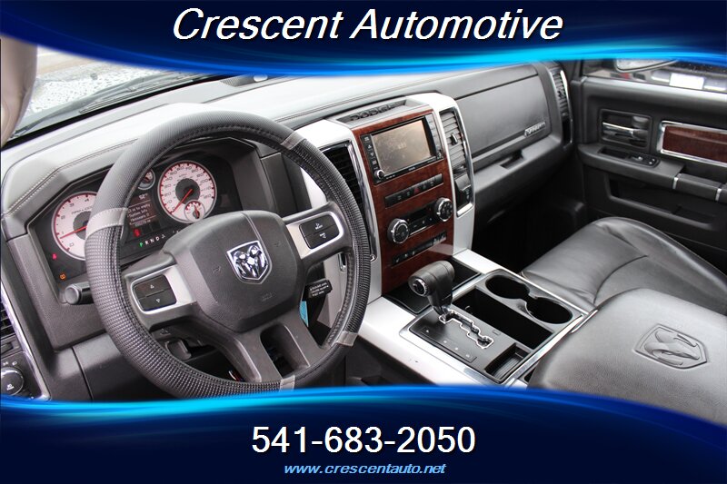 Clean, well-maintained 2009 Dodge Ram 1500 Laramie in Black with a Black leather interior. Powered by the stout 5.7L HEMI V8 and showing under 156,000 miles (averaging less than 9,000 miles per year), this truck returns about 13 MPG city and 18 MPG highway and is in good overall condition. The Laramie trim brings factory luxury and convenience features including leather-trimmed heated front seats with power adjustments, woodgrain interior accents, premium audio with CD and auxiliary input, chrome exterior trim and factory alloy wheels, power windows/locks/mirrors, remote keyless entry, cruise control, automatic climate control, and full safety essentials like airbags and ABS — all the comfortable, capable equipment you’d expect from the Laramie. Friendly, capable, and ready to go.
