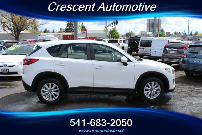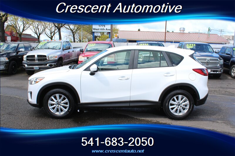 Clean, efficient and ready to go — this 2014 Mazda CX-5 Sport in Crystal White Pearl Mica with a Black interior is powered by Mazda’s SKYACTIV-G 2.0L I4 (155 hp, 150 lb-ft) and delivers an economical 25 MPG city / 31 MPG highway. Factory-standard features include SKYACTIV efficiency tech with a smooth 6-speed transmission, 17" alloy wheels, air conditioning, power windows and locks, keyless entry, tilt/telescoping steering wheel, steering-wheel audio and cruise controls, Bluetooth hands-free and audio streaming plus USB/iPod input, cloth seating with 60/40 split-fold rear seats, ABS with stability and traction control, and a full complement of airbags and tire pressure monitoring. With under 122,000 miles (averaging less than 10,000 miles per year) and in good overall condition, it’s a practical, reliable compact SUV that’s easy to live with.