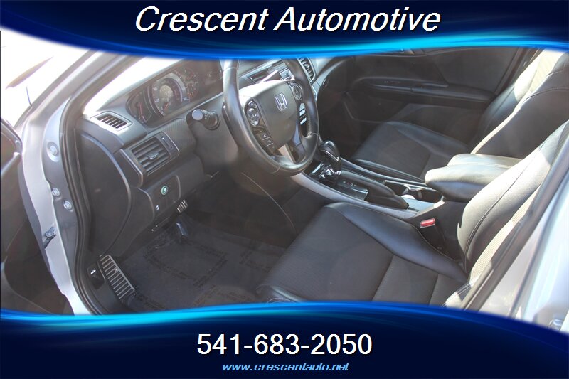 Clean, sporty and efficient — this 2017 Honda Accord Sport with 172,588 miles in Lunar Silver Metallic with a Black interior is powered by a lively 2.4L I4 delivering 189 hp and 182 ft-lbs of torque, with fuel economy around 26 MPG city / 34 MPG highway and in good overall condition. Factory Sport details include athletic exterior accents like 18-inch alloy wheels, dual chrome exhaust finishers, fog lights and a subtle rear decklid spoiler. Inside you’ll find supportive black cloth seats with sporty bolstering, a leather-wrapped steering wheel with audio and cruise controls, power windows/locks/mirrors, Bluetooth hands-free and USB connectivity, and a multi-angle rearview camera. Standard safety and convenience gear includes ABS, stability control, multiple airbags and tire pressure monitoring for everyday confidence.