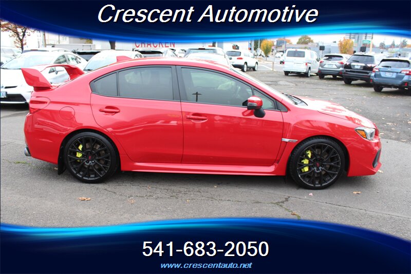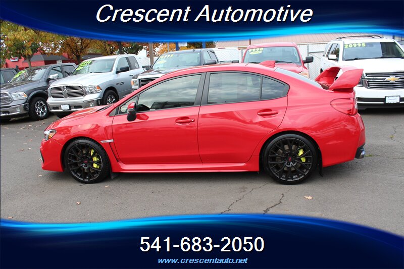 Unleash your inner racer with this 2018 Subaru WRX STI with 123,688 miles, a true powerhouse on the road. Fueled by a ferocious 2.5L Turbo H4 engine, this beast delivers an exhilarating 305 horsepower and 290 ft-lbs of torque, ensuring you dominate every curve and straightaway. Drenched in a striking Pure Red exterior, it commands attention while the Black/Carbon Black bolstered interior provides a sporty, refined cockpit designed for performance.